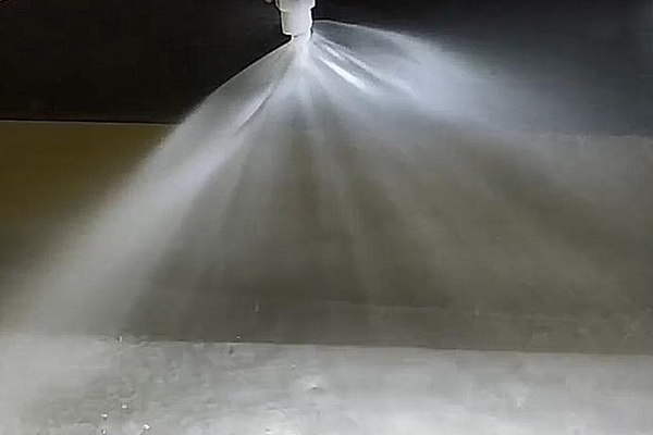 2021.6.3 礦山石料破碎除塵噴霧工程,深圳市鑫龍環(huán)保科技有限公司噴霧除塵(超聲霧化除塵)是最簡便和最經(jīng)濟(jì)的除塵方式,并且除塵效果良好。噴霧除塵是將水霧化處理成許多高速運(yùn)動(dòng)的密集細(xì)小水滴,是借助壓縮空氣沖擊共振腔產(chǎn)生的超聲波,利用超聲波將水霧處理成濃密的微細(xì)霧滴,這些微細(xì)霧滴在相對密閉的空間內(nèi)可以捕獲、凝聚微細(xì)粉塵,使得微細(xì)粉塵的黏性、濕度和比重顯著增加,進(jìn)而使得粉塵迅速沉降下來,逐漸實(shí)現(xiàn)除塵的目的。